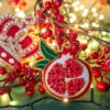 Decorazione in Tessuto fatta a mano a forma di Melograno dell’esclusiva collezione Il Natale del Re, ispirati all’eleganza e alla raffinatezza del mondo inglese.