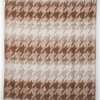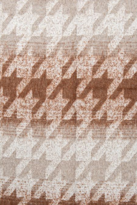 Disegno pied de poule jacquard con bande orizzontali sfumate, disponibile in diverse varianti di colore melange, frangia di colore bianco.