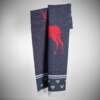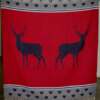 Disegno composto da due grandi cervi centrali e balze di cuori all’estremitĂ in prossimitĂ della frangia bianca.