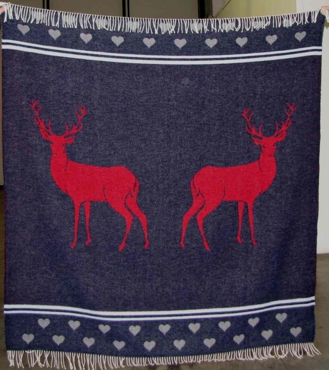 Beat Collection – Plaid art. Cervi misto lana con frange – col. blu ciliegia