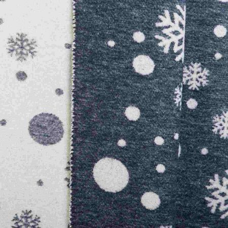 Disegno con pois e fiocchi di neve double face, disponibile in vari colori con frange bianche.