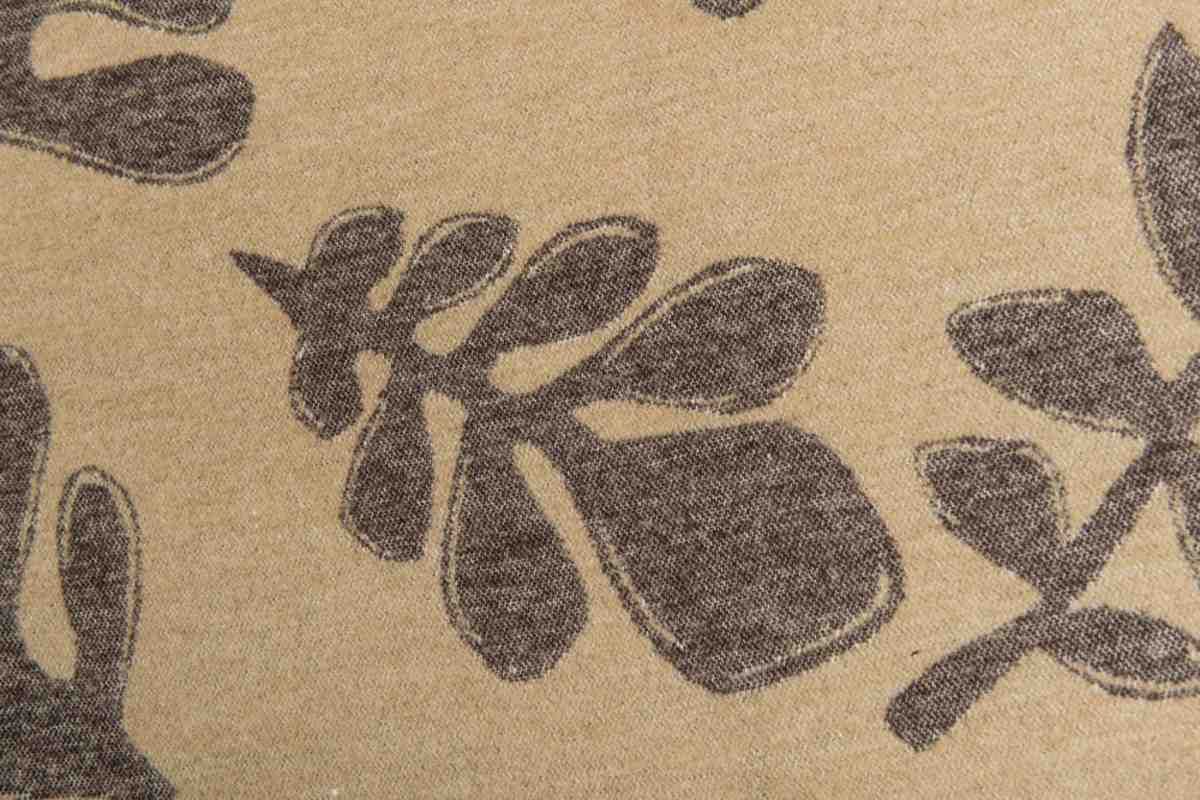 Disegno con foglie, double face bicolore negativo positivo, frangia di colore bianco.