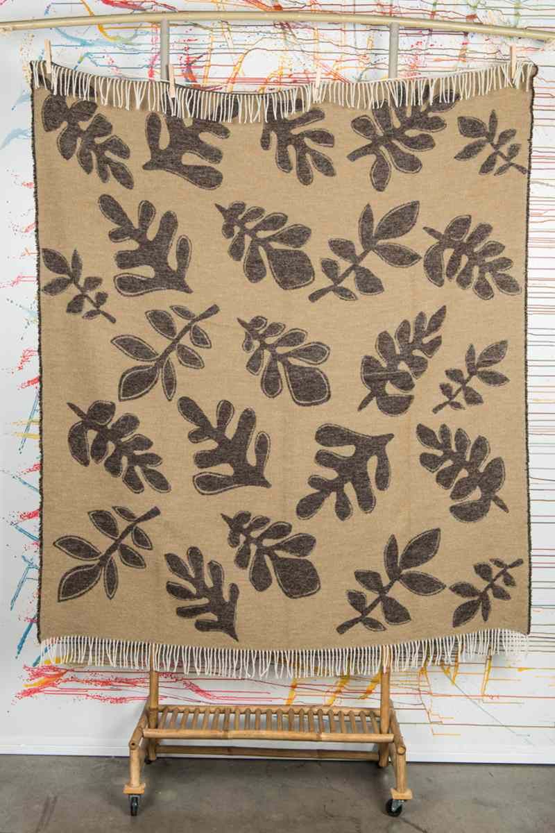 Beat Collection – Plaid art. Foliage misto lana con frange – Camel