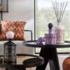 Bottiglia in vetro decorato, con tappo. Una fantasia che si ispira all’arte della città di Istanbul con elementi geometrici, eleganti sfumature dal lilla al nero e dettagli dorati. Perfetta per arredare l’ambiente e per affascinare i sensi se utilizzata come diffusore di essenze. Un elemento decorativo che cattura l’occhio e conquista l’anima.