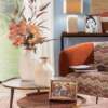 Lampada da tavolo in ceramica con paralume in tessuto per un effetto materico unico che si ispira alle nervature naturali. Perfetta per illuminare un living moderno e accogliente