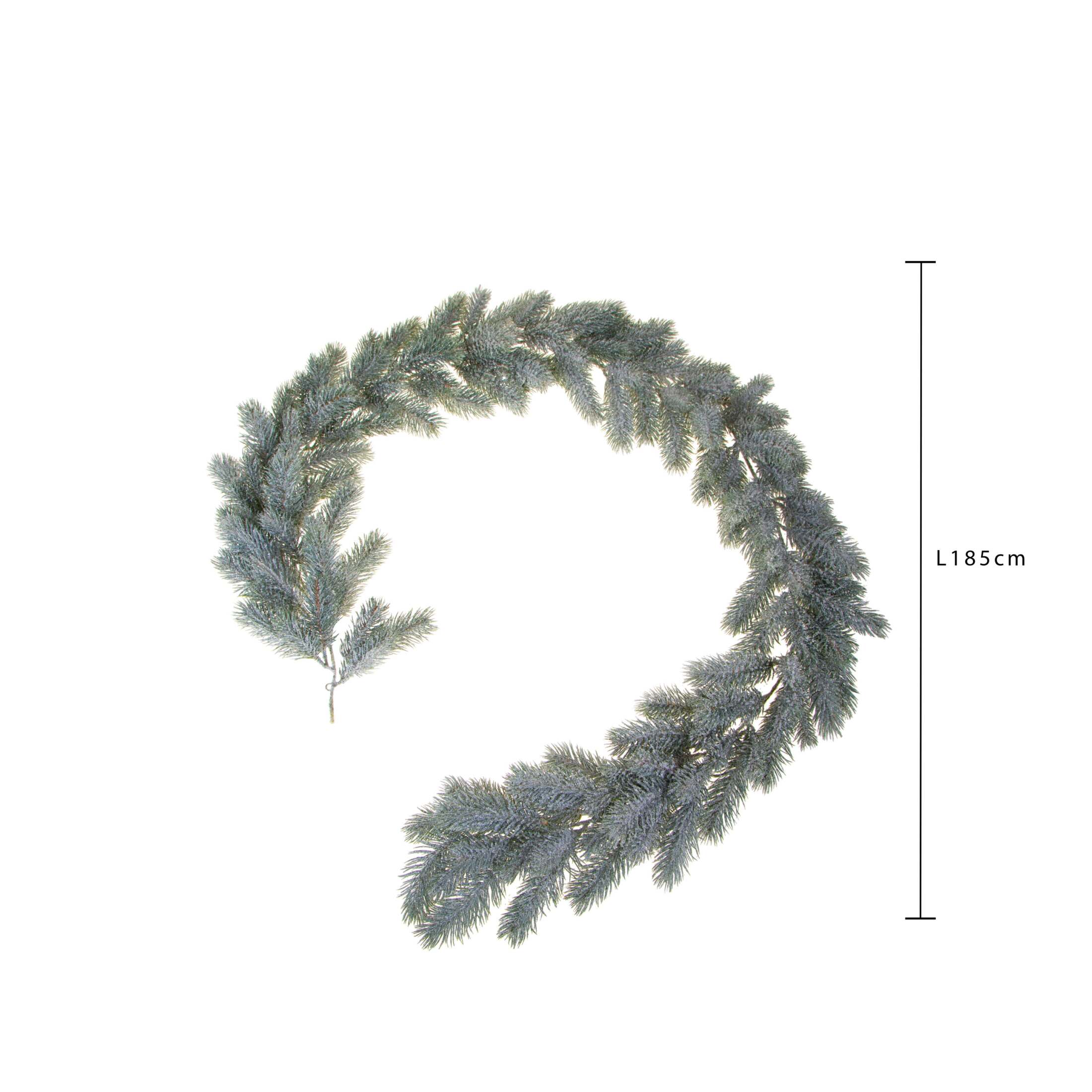 Ghirlanda decorativa lunga 185 cm, realizzata in abete sintetico e impreziosita da un elegante effetto ghiacciato con glitter. Perfetta per arricchire porte, mensole, camini, come centrotavola e per allestimenti natalizi. Morbida, modellabile e ideale per creare atmosfere festive luminose.