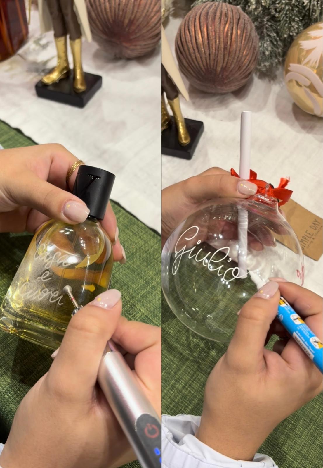 Per personalizzare decorazioni natalizie, bottiglie di profumo per ambiente e eau de parfum, basta selezionare e aggiungere il prodotto “PERSONALIZZAZIONE” a carrello e specificare poi la vostra richiesta dettagliata nelle note o tramite un messaggio whatsapp!