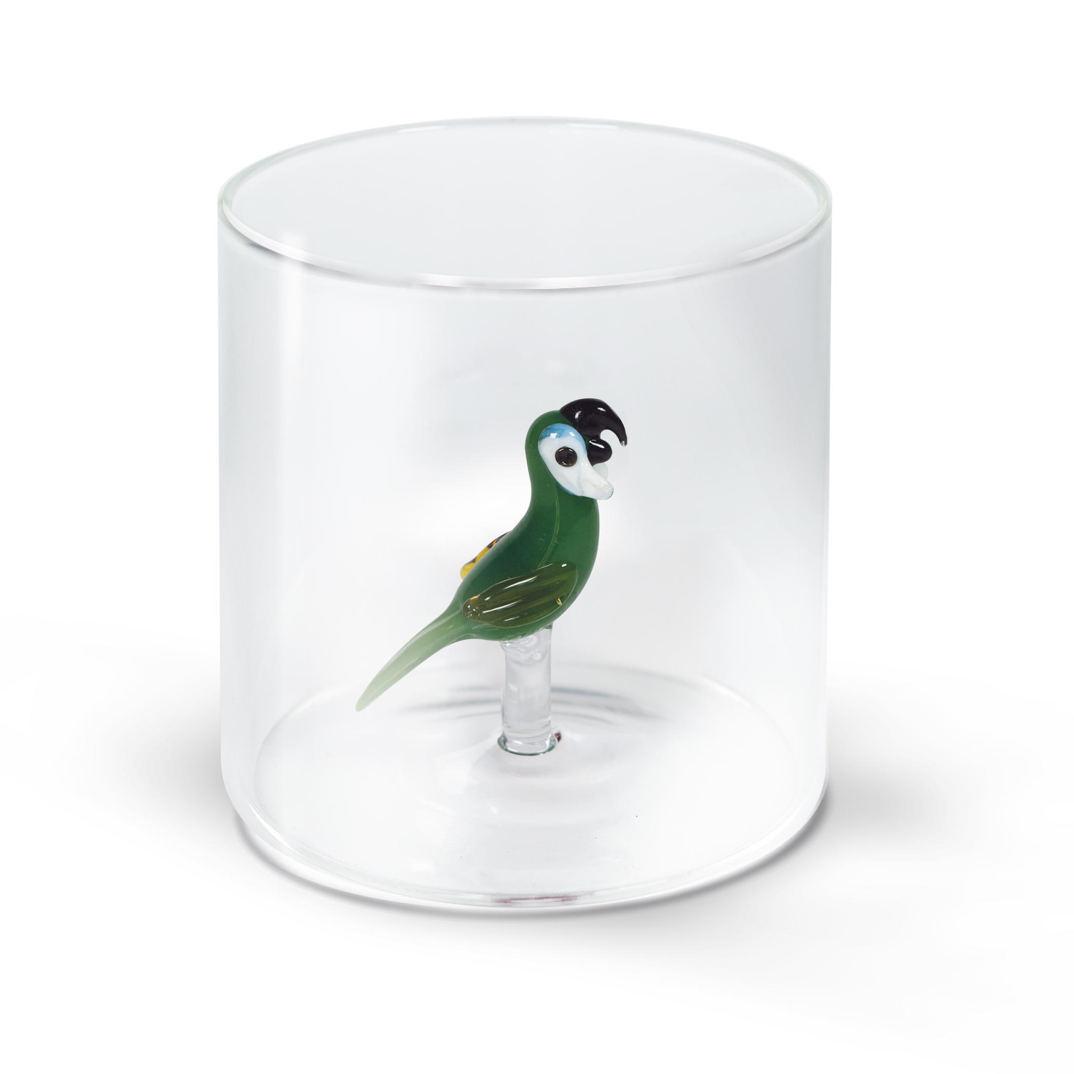 Wd Lifestyle – Bicchiere in vetro borosilicato con soggetto in vetro all’interno figura Pappagallo